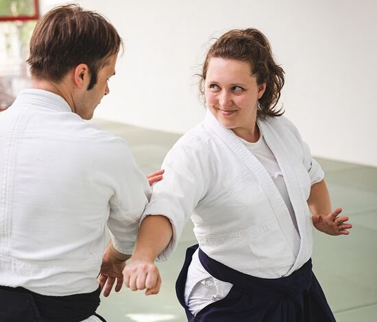 Auf diese Situationen bereitet sich der Aikidoka durch ausdauerndes und konzentriertes Üben vor. Nicht Flucht, nicht Angriff, nicht Totstellen oder in Panik verfallen. Aikido geht einen anderen Weg: Standhalten und Haltung bewahren, den eigenen Raum ausfüllen, nicht vor der Kraft des Angriffs fliehen, aber auch nicht gegen die Kraft des Angriffs gehen. Der Konflikt bleibt außerhalb meines Raumes, ich bewege mich frei und unabhängig vom Angreifer, gehe stets meinen eigenen Weg. Mein Geist, meine Gefühle, mein Körper, miteinander verbunden und nicht angreifbar, weil der Kraft des Angreifers nicht widerstanden wird, sondern weil ich sie auflöse.